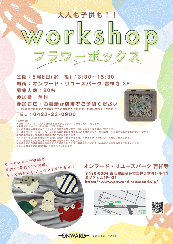 リユースパーク 吉祥寺では、5/6(水・祝) にフラワーボックス作りのワークショップを開催いたします!